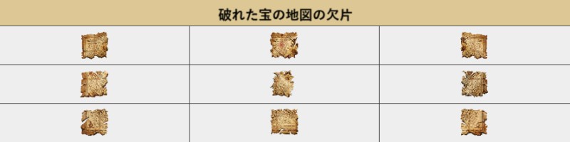 そのアイテムをラビニアのコケ取り剤と簡易錬金すると、「破れた宝の地図の欠片」を獲得できます。「破れた宝の地図の欠片」は9種類存在します。すべての部位を集めたら、調合することで「ある船員のお宝地図」を獲得できます。また、低い確率ではありますが、コケに覆われた地図を簡易錬金するとすぐに「ある船員のお宝地図」になることもあります。