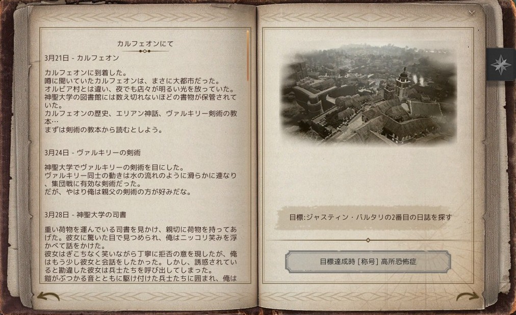 2.ジャスティン・バルタリの2番目の日誌を探す(目標達成時:[称号]高所恐怖症)