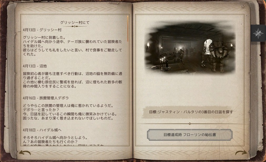 3.ジャスティン・バルタリの3番目の日誌を探す(目標達成時:フローリンの秘伝書)