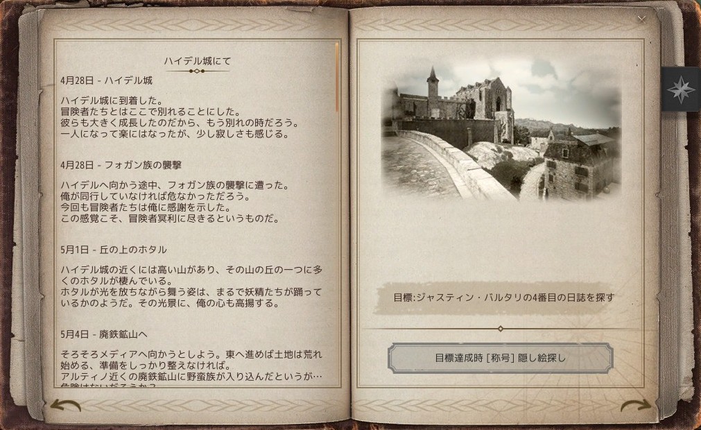 4.ジャスティン・バルタリの4番目の日誌を探す(目標達成時:[称号]隠し絵探し)