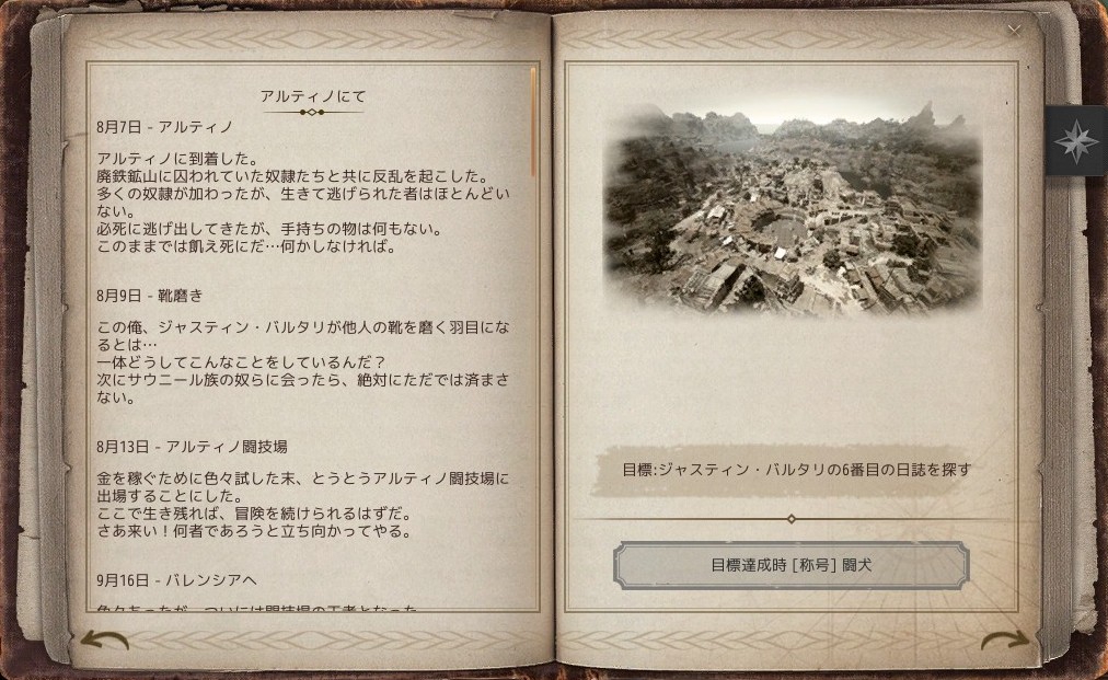 6.ジャスティン・バルタリの6番目の日誌を探す(目標達成時:[称号]闘犬)