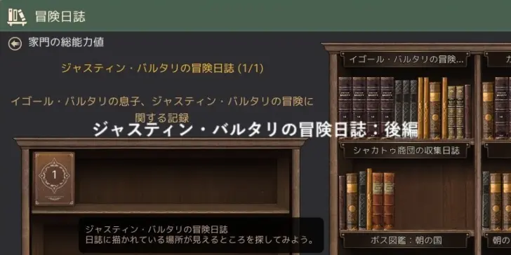 15.ジャスティン・バルタリの15番目の日誌を探す(目標達成時:[EV]封印された戦闘の書(7日))