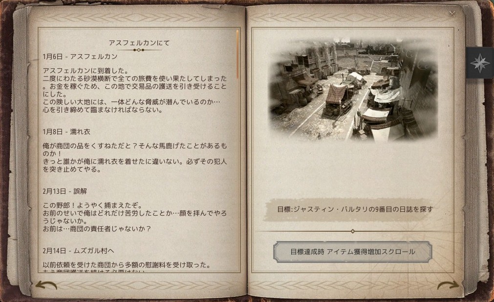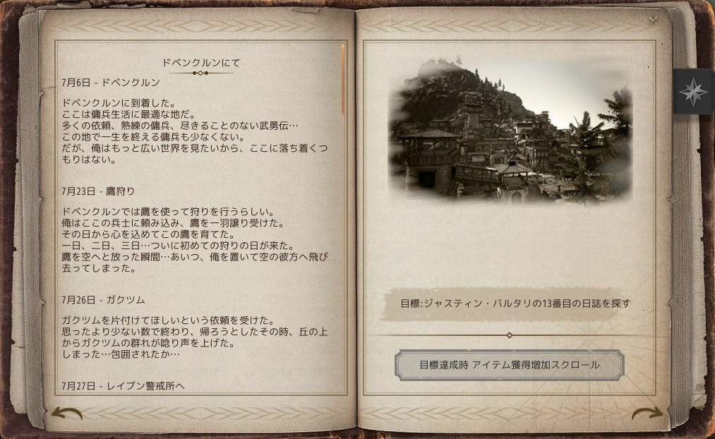 9.ジャスティン・バルタリの9番目の日誌を探す(目標達成時:アイテム獲得増加スクロール)