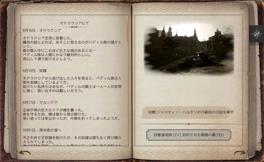 15.ジャスティン・バルタリの15番目の日誌を探す(目標達成時:[EV]封印された戦闘の書(7日))