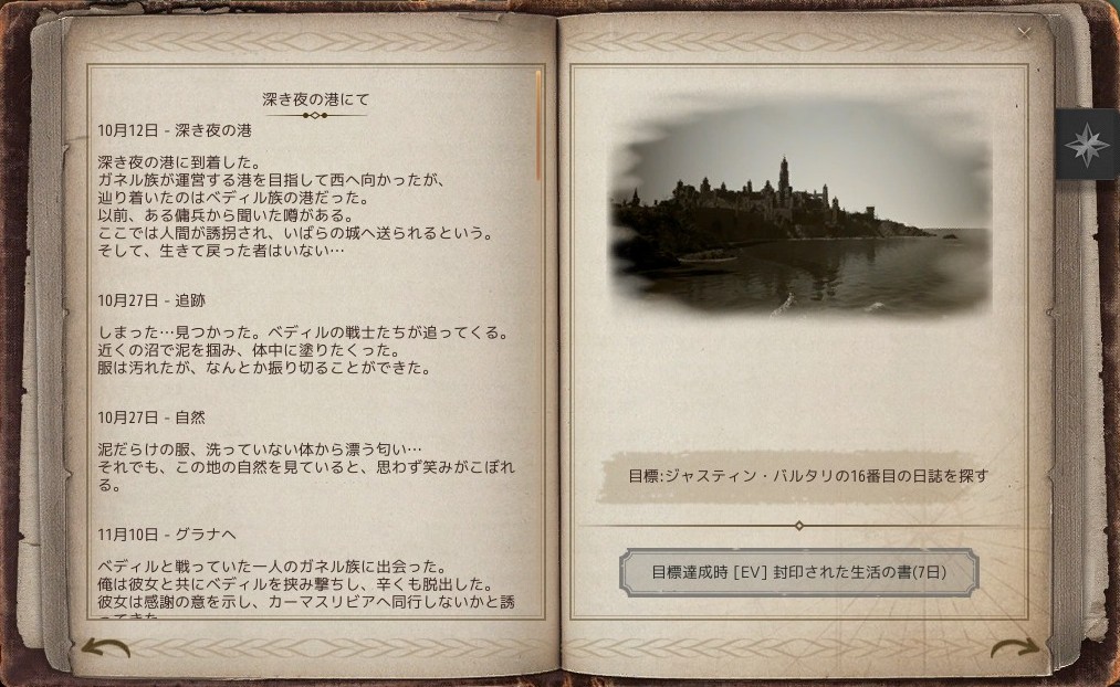 16.ジャスティン・バルタリの16番目の日誌を探す(目標達成時:[EV]封印された生活の書(7日))