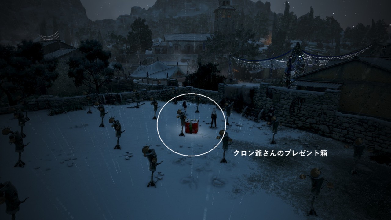 ベリア村にのみ出現するクロン爺さんが落としたプレゼント箱を見つけて、「[EV] 失くしたプレゼント箱」を獲得します。※ クロン爺さんは、チャンネルごとに出現する時間や場所が異なりますのでプレゼント箱も発生がランダムとなります。クロン爺さんは出現後、一定時間が経過するといなくなりますが、約60分後に再び出現します。プレゼント箱は、出現してから3分が経過すると消えます。