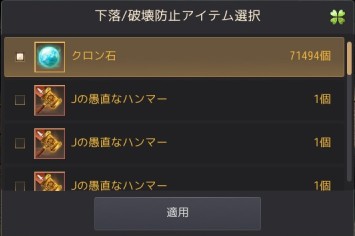 「下落/破壊防止」領域をクリックして、強化下落を防止できる材料アイテムを選択できます。