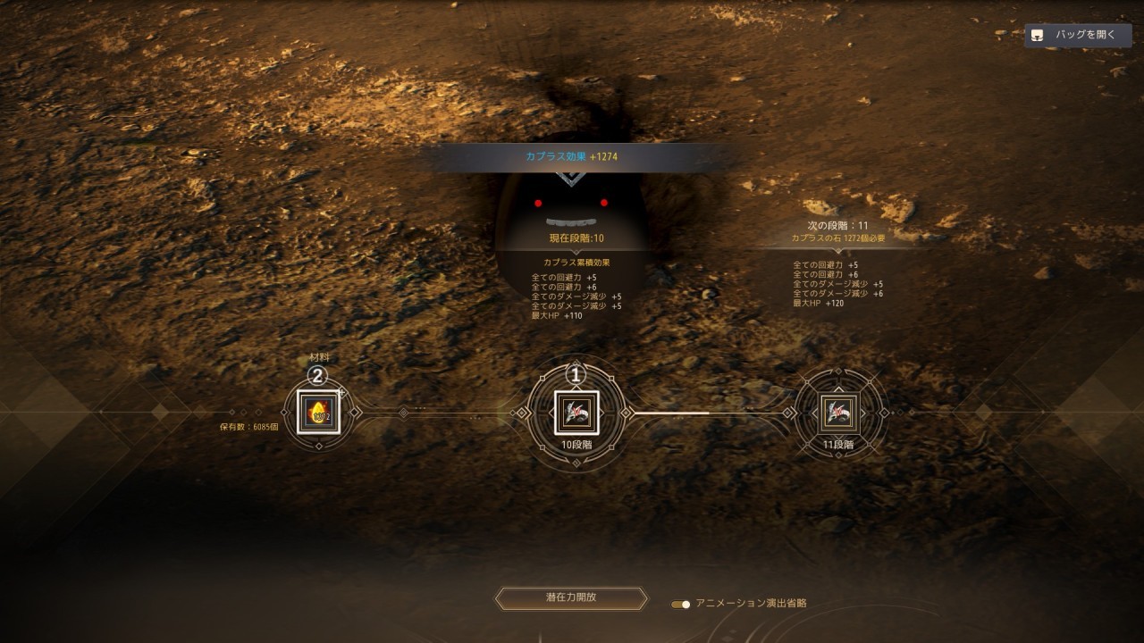 画面下にある「潜在力開放」をクリックすると、カプラス突破になります。
