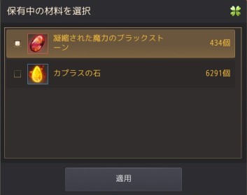 例:○○のブラックストーンやカプラスの石を選択します(上記の場合はカプラスの石を選択)