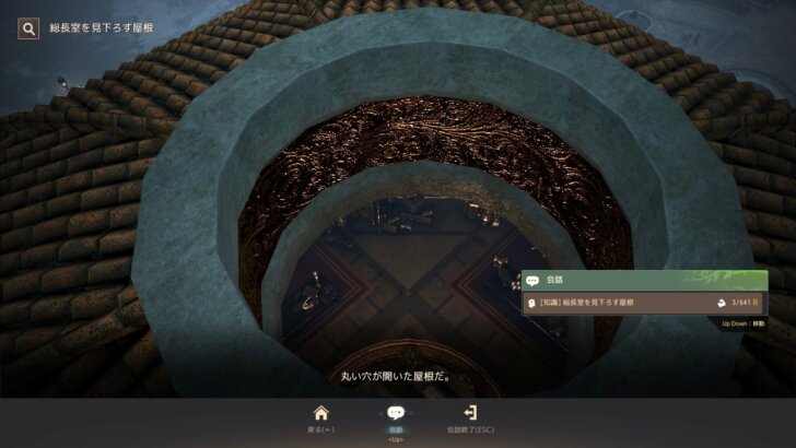 確認してみると、ジャスティン・バルタリ総長のいる総長室の上の屋根に淡いエフェクトがあり、知識がある場所なので、そこへの行き方です。