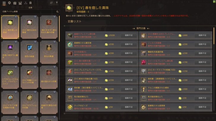 [EV] 春を宿した真珠で交換可能なアイテム
