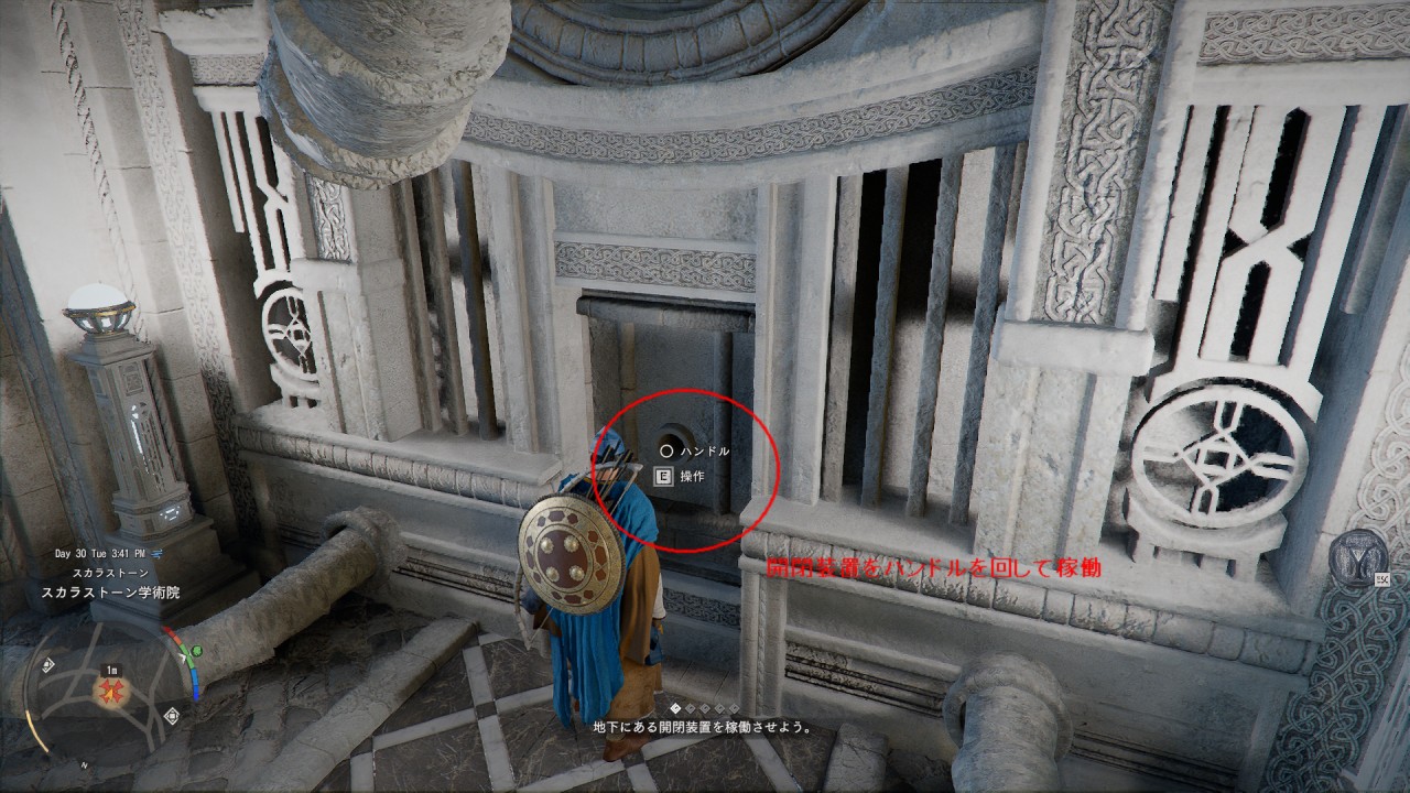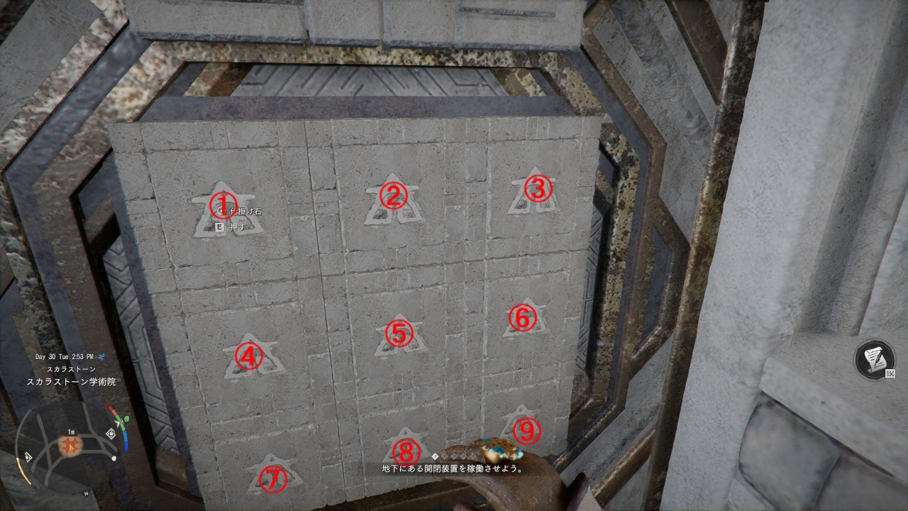 最初に石板を順番に押していきます。押す位置はPCの場合「WASD」キーを使って移動することができます。