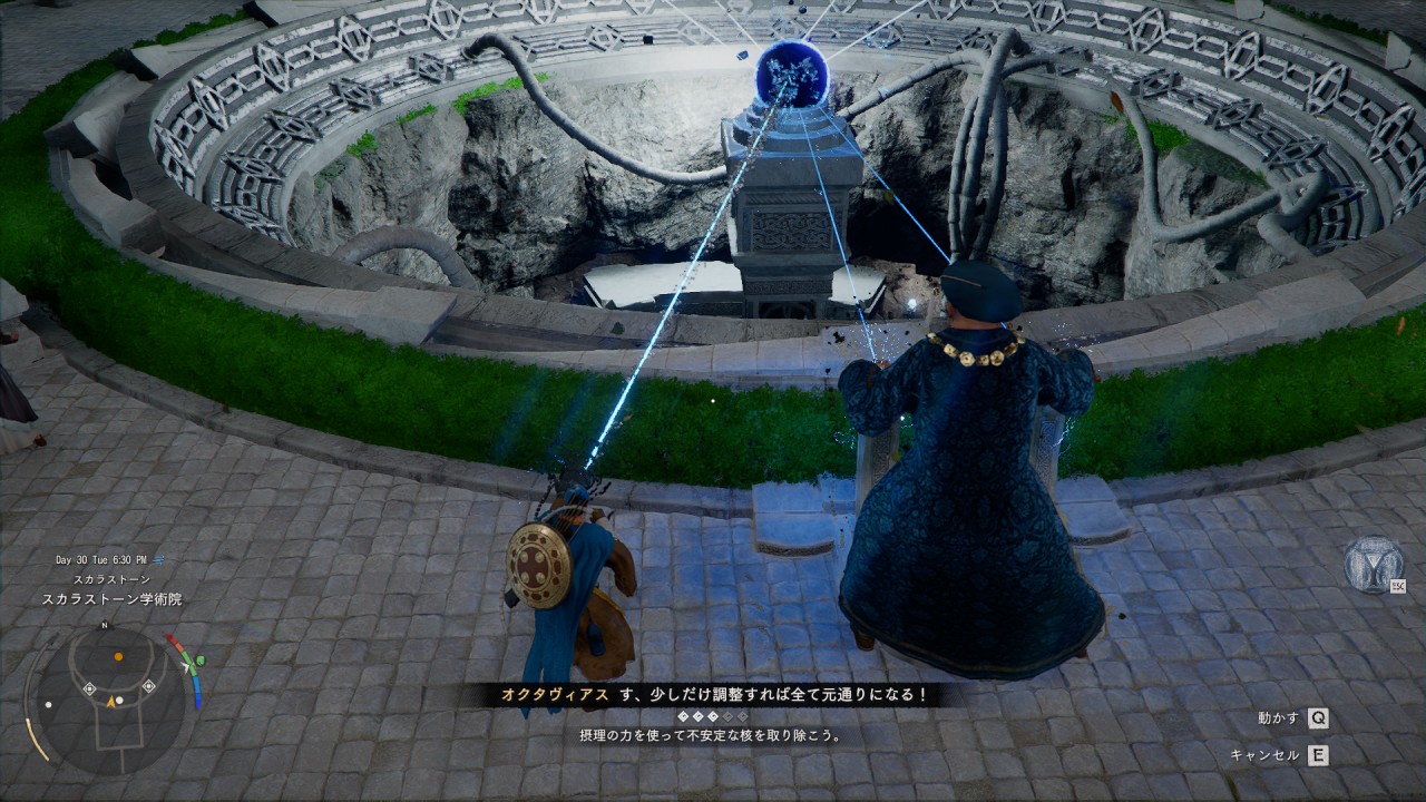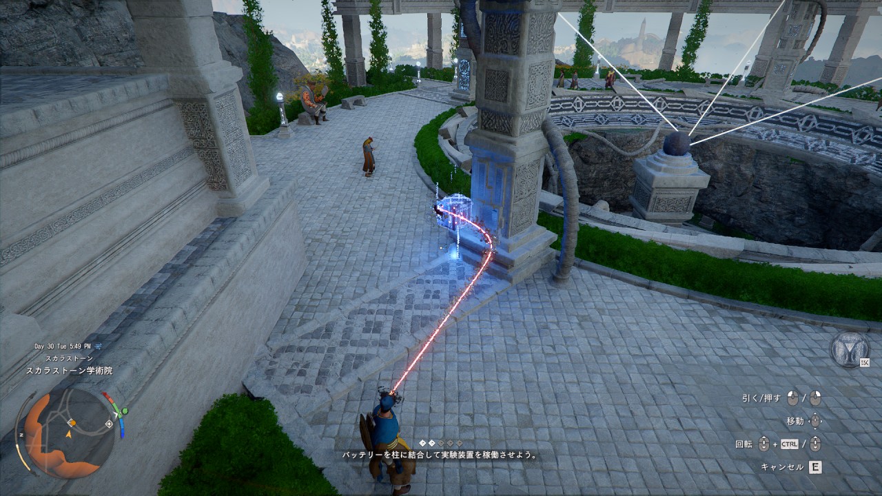 スキル「摂理の力」を使いバッテリーを柱に集めて、スキル「衝波」ではめ込みます。これを4か所の柱でおこないます。