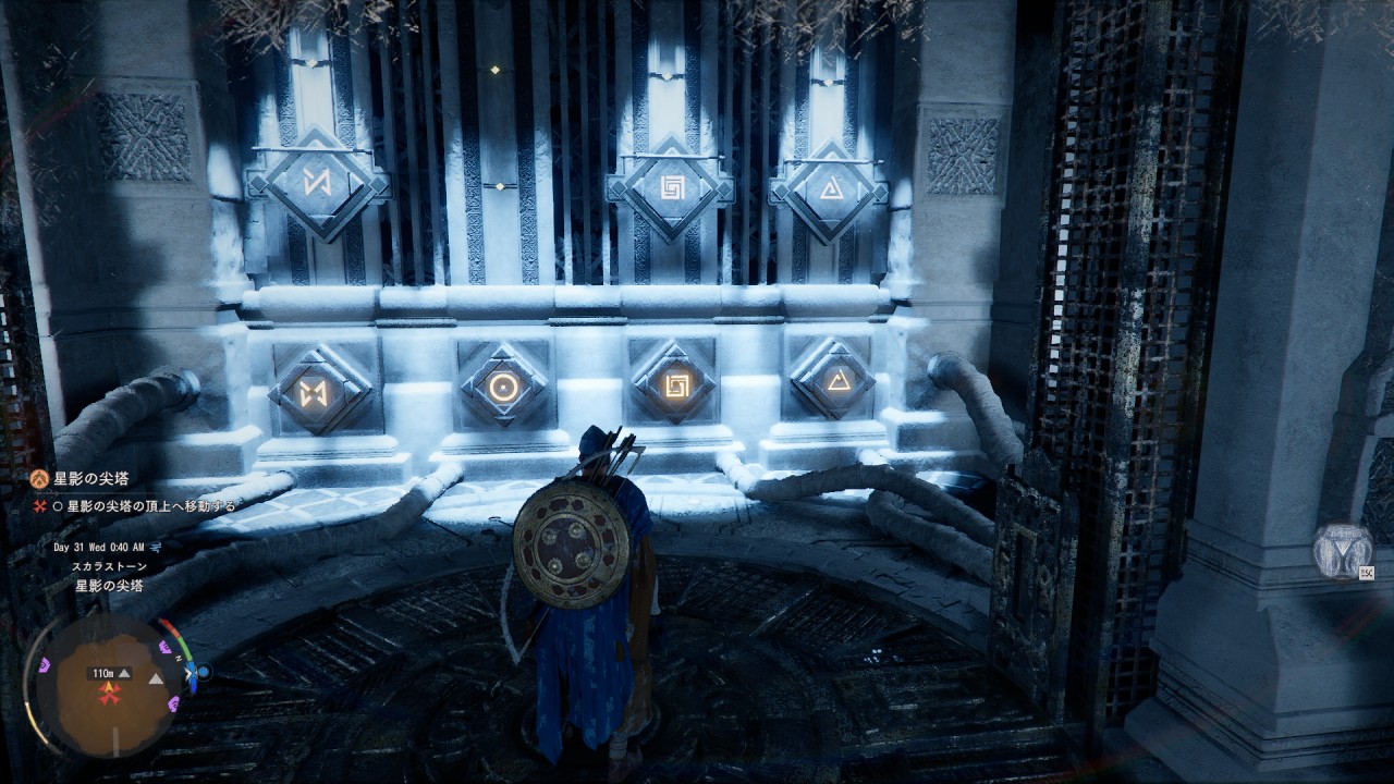 位置が同じになると石板手前のエレベーター(キャラクターが居る場所)が稼働して、星影の尖塔の頂上へ行けます。