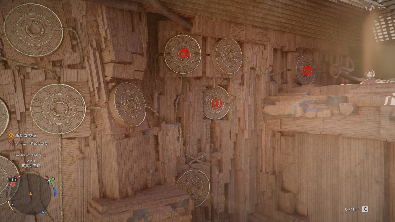 向かって右側手前の石板プレートを下図の順番で掌波を使って押します。